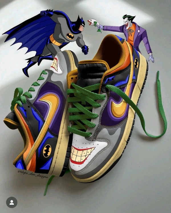 NIKE DUNk Lowđ Dunk Low Batman x Jokerâ design would be intriguing and could feature elements inspired by the contrasting characters. The shoe could have a split color palette, One side in dark tones like black, dark grey, and hints of yellow, inspired by Batmanâs classic colors. The other side in vibr